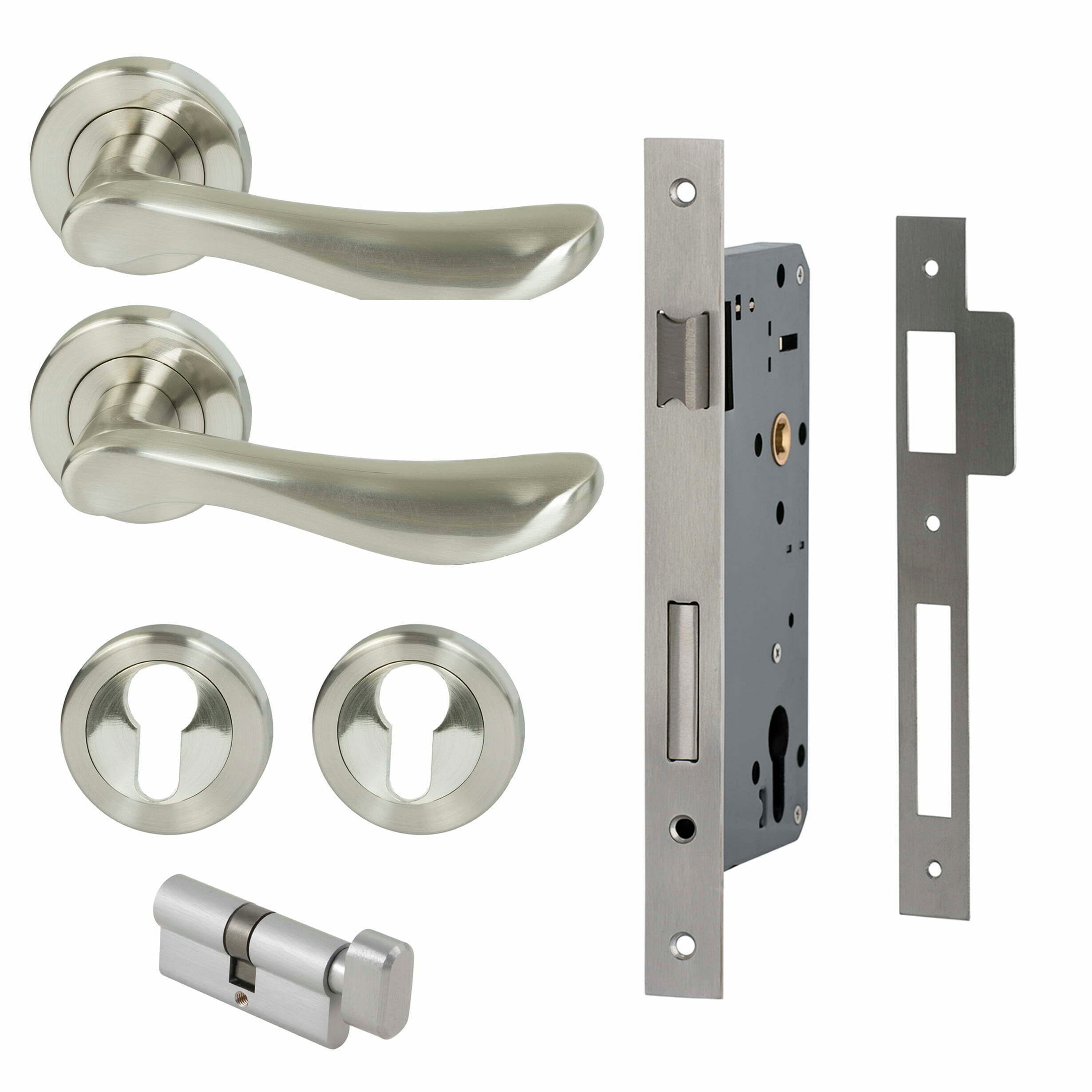 - Includes lever set, euro escutcheons, 716SS60 euro mortice lock and euro cylinder and turn