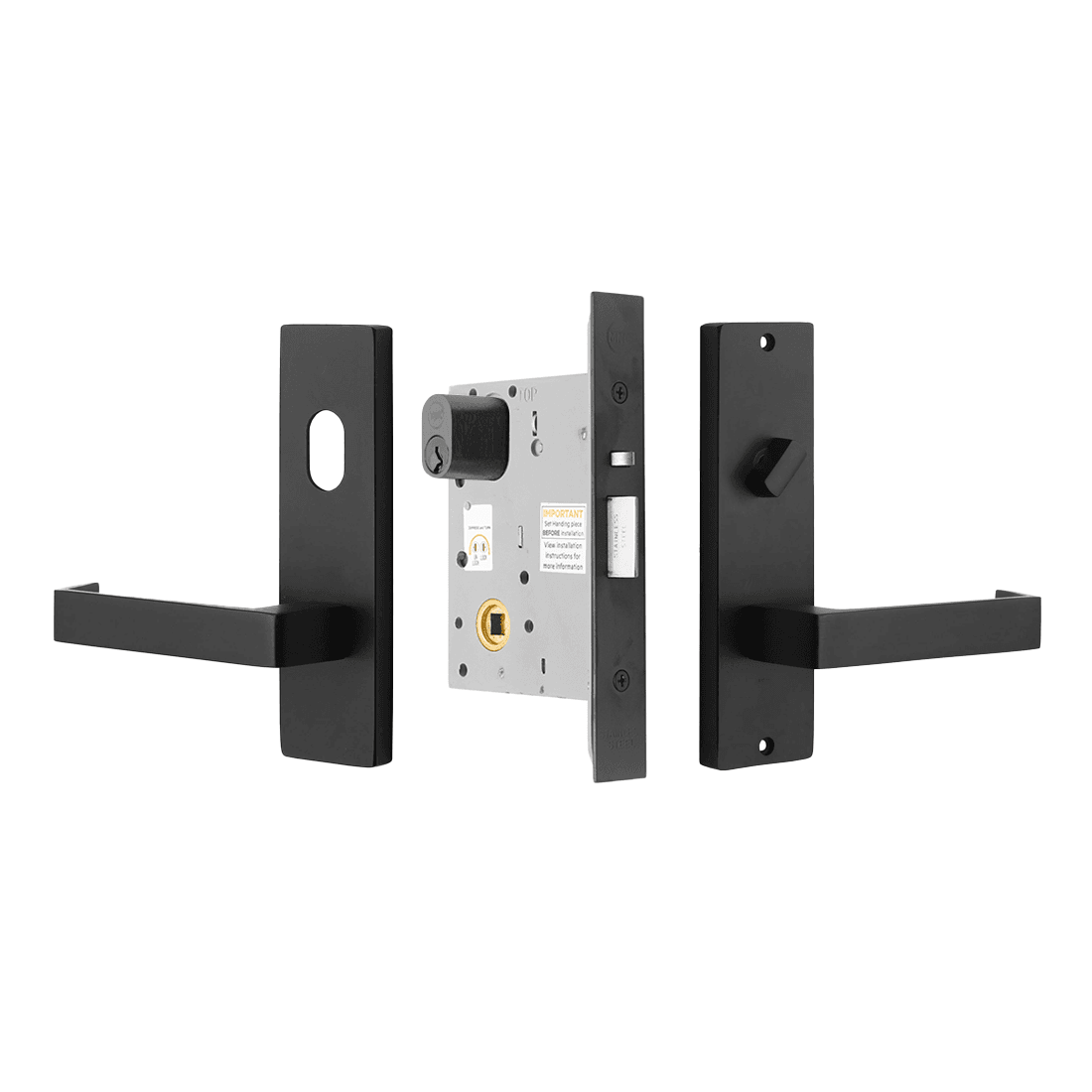 Commercial Entrance Lock Kit with Keys – 87 Lever – Matt Black