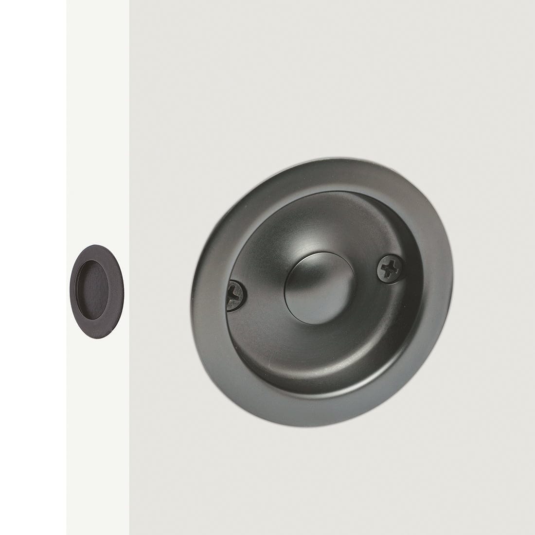 This round cavity slider passage set (non-locking) in Satin Graphite finish is part of Miles Nelsons’ range of cavity sliding door sets. Designed to complement our extensive range of quality door handles. The stylish and innovative cavity slider sets are offered in dummy, passage and privacy options. All available in square and round options, and in a variety of finishes.