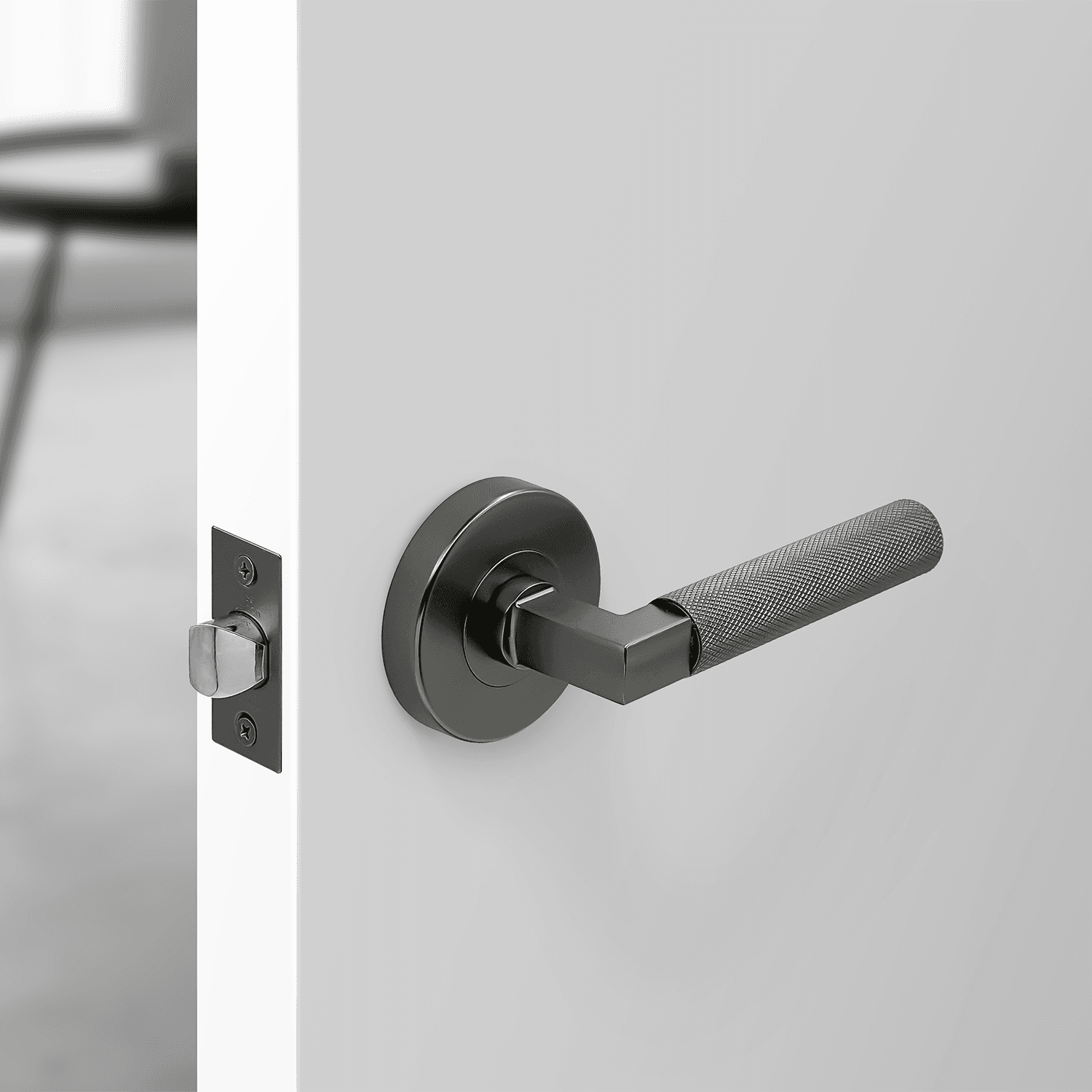 The Scarlett lever features a knurled design, delivering a modern luxury aesthetic with a solid, confident grip feel.
