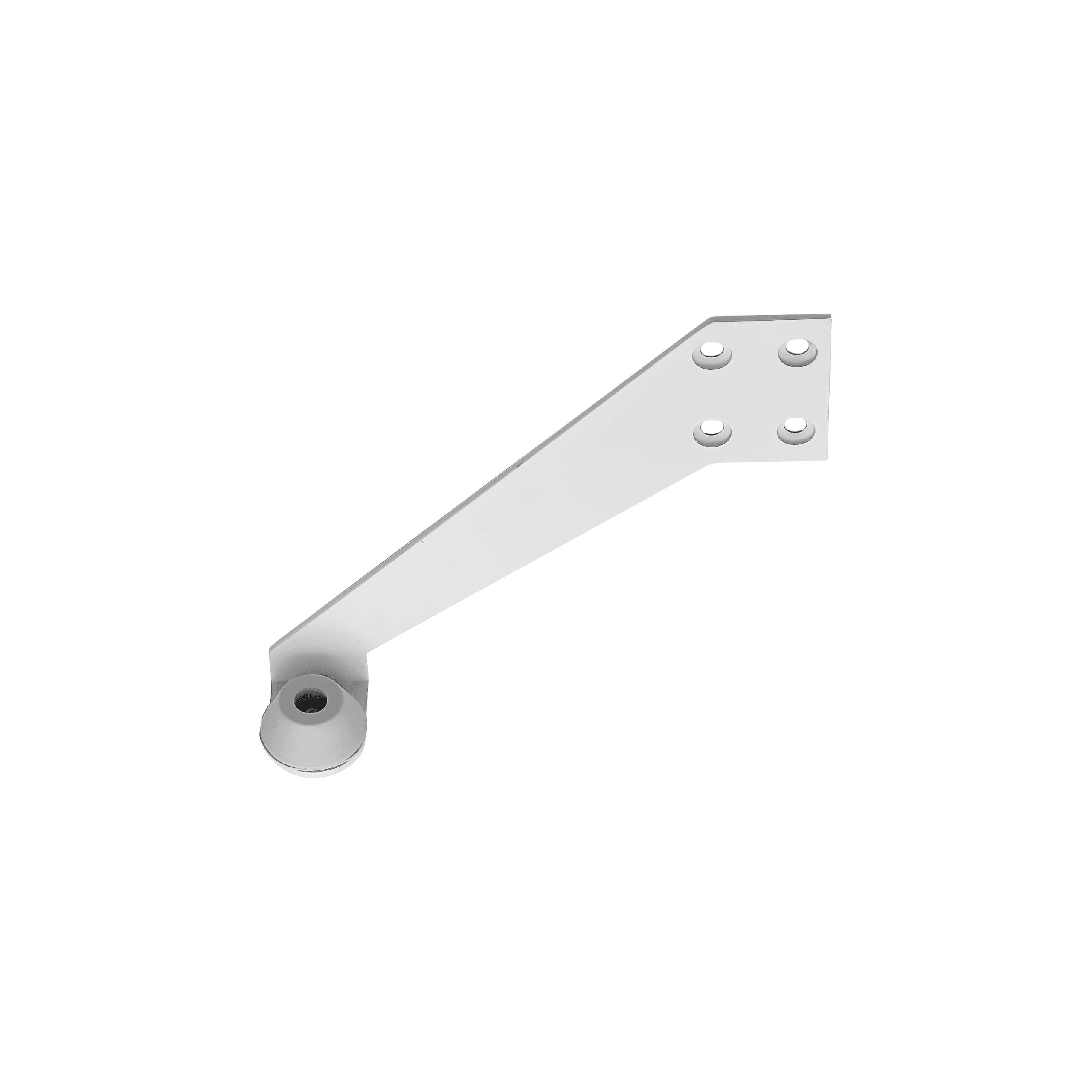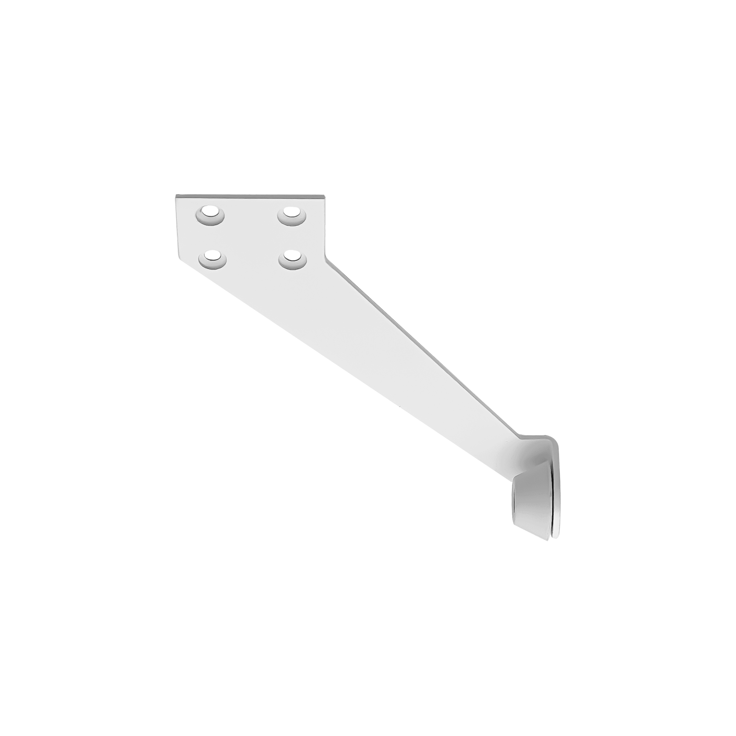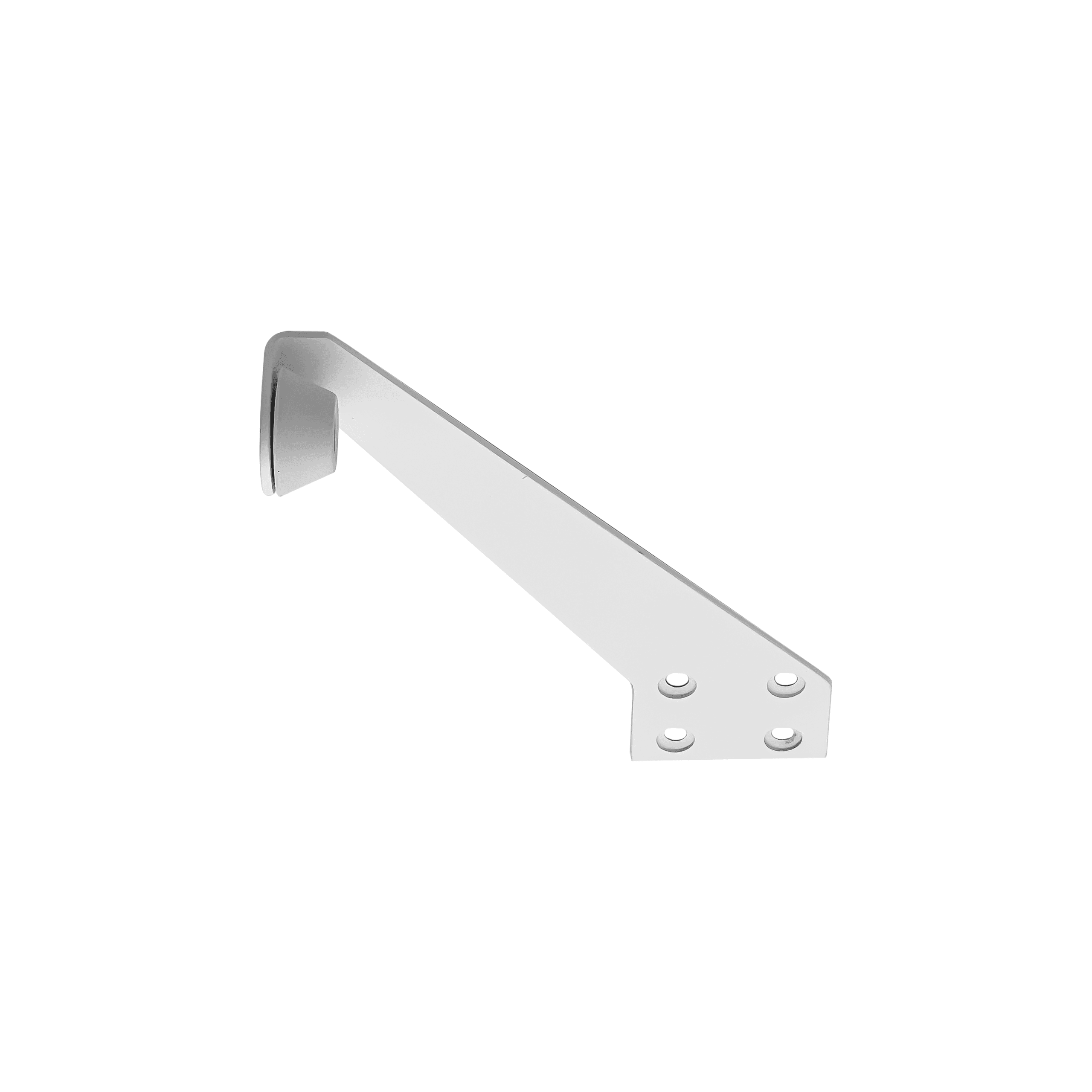 Left-hand white overhead door stop to be mounted to the top of the doorframe. Made from 304 Stainless Steel with a powder-coat white finish.